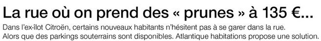 La rue où on prend des "PRUNES" à 135€... Article Ouest France du 04/10/2016