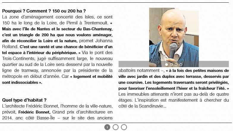 Les iles, futur trait d'union entre Nantes et Rezé. (article Ouest France du 01/02/2017)