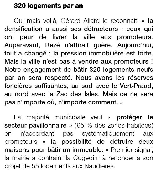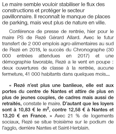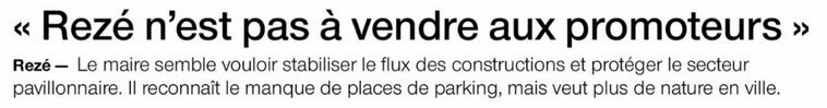 "Rezé n'est pas à vendre aux promoteurs" (article Ouest France du 20/09/2017)